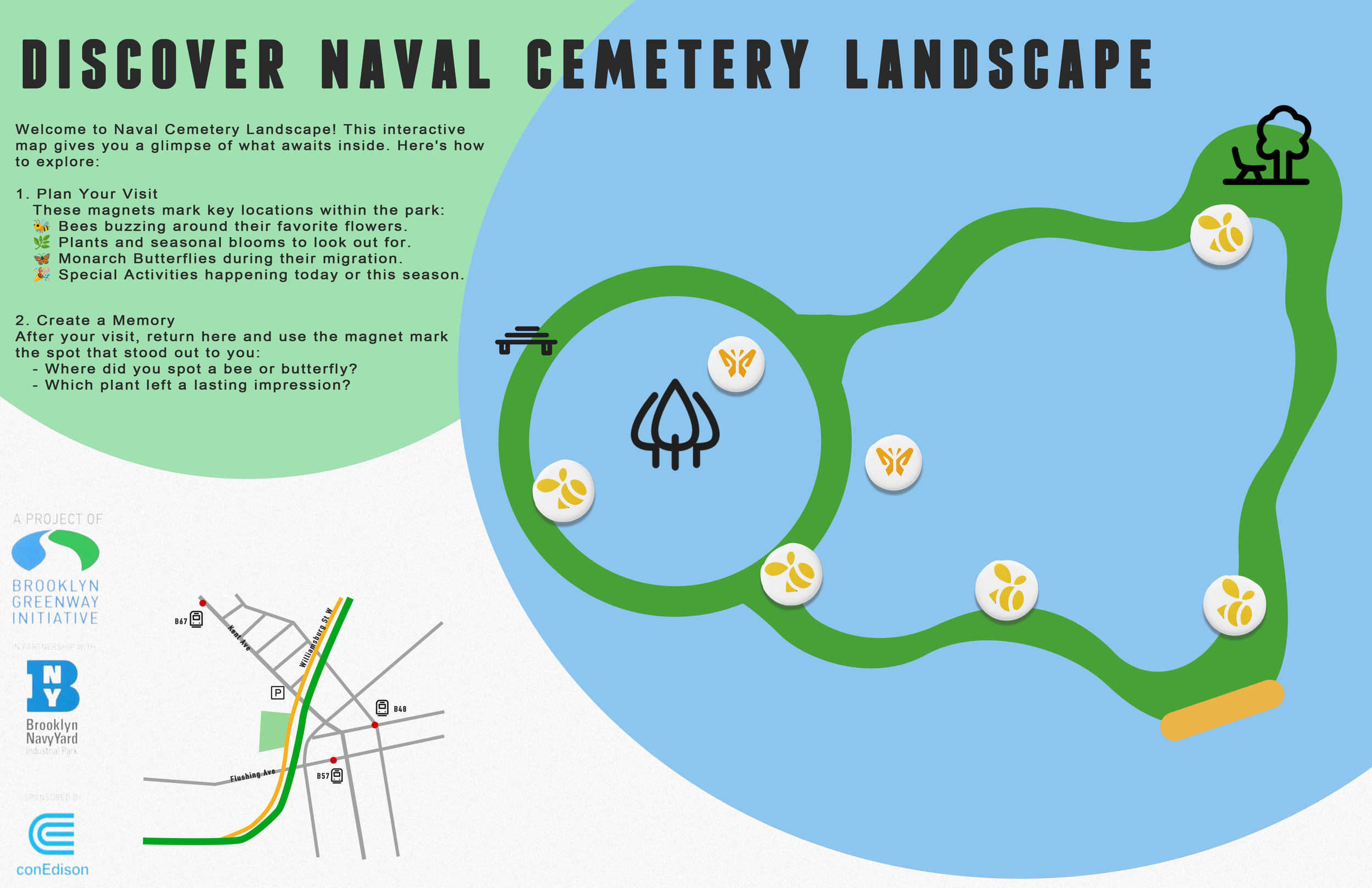 The goal of this project is to enhance visitor engagement and improve the overall experience at the Naval Cemetery Landscape (NCL), part of the Brooklyn Greenway.