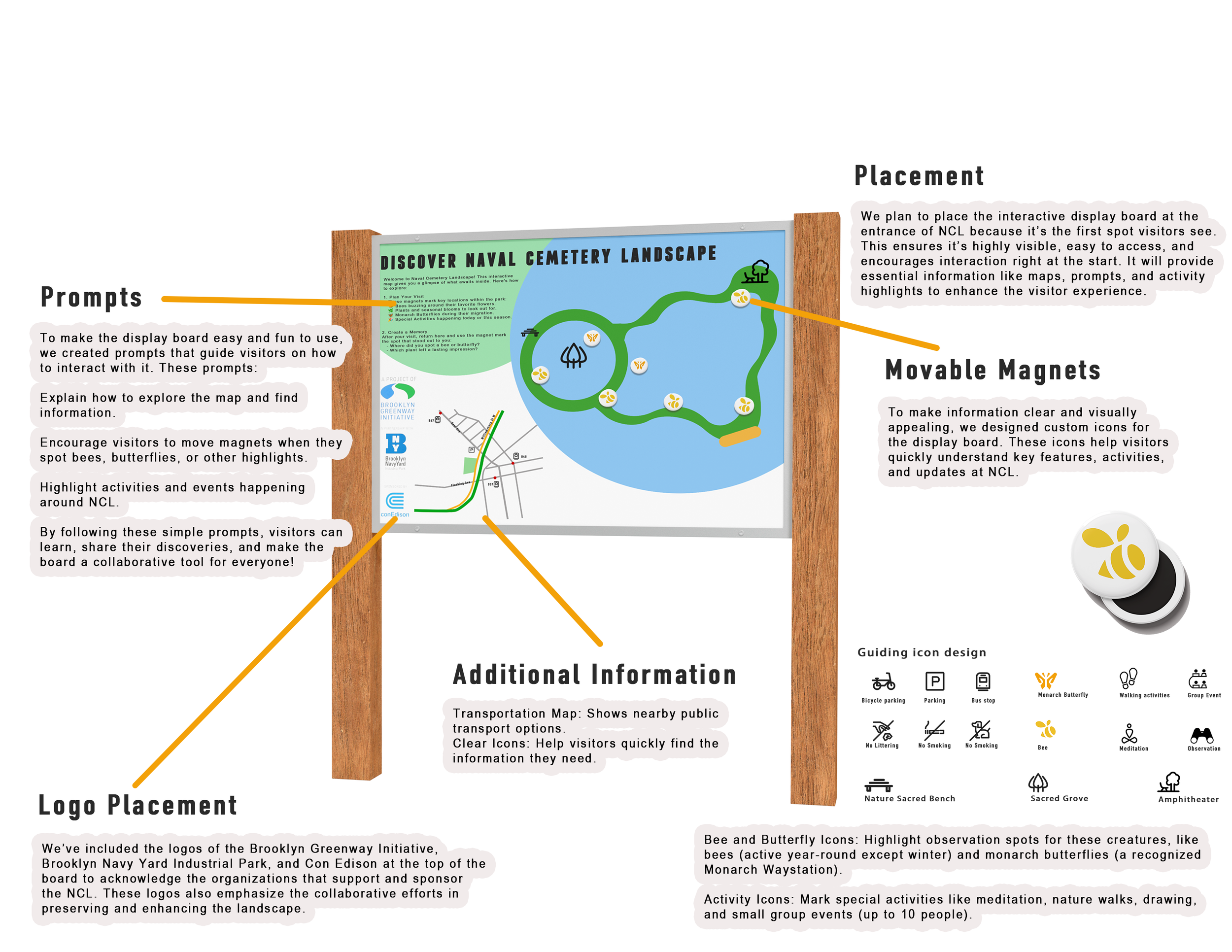 We designed an interactive display board and educational stations to make information accessible, engaging, and helpful for both staff and visitors.