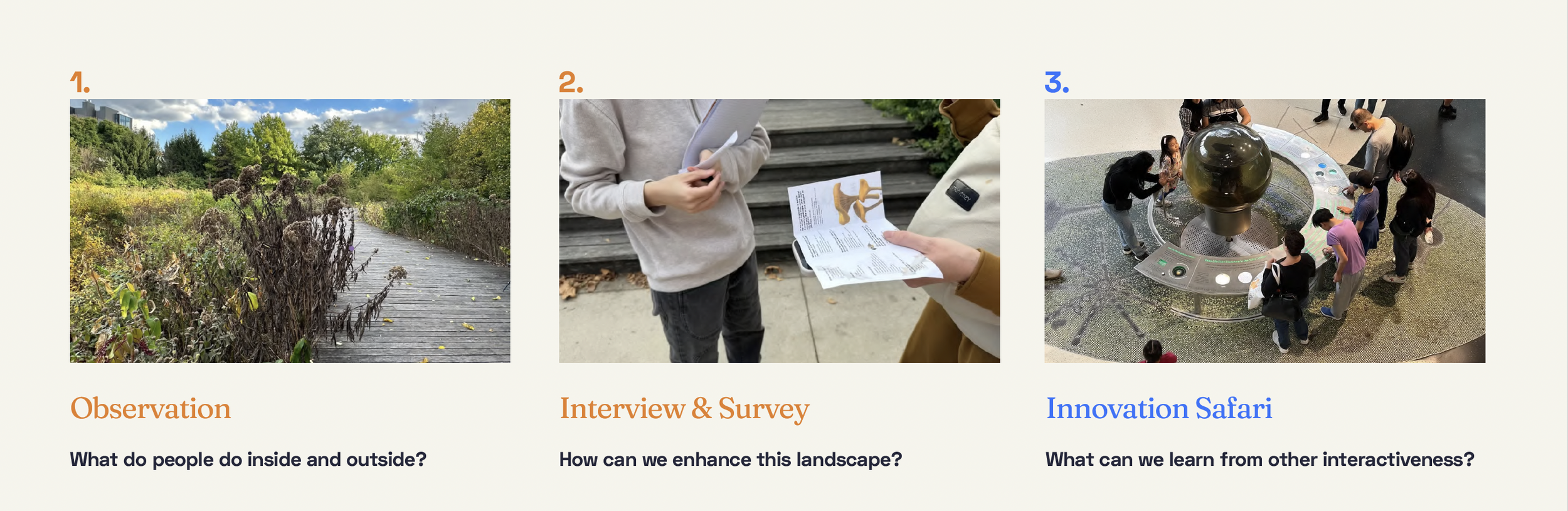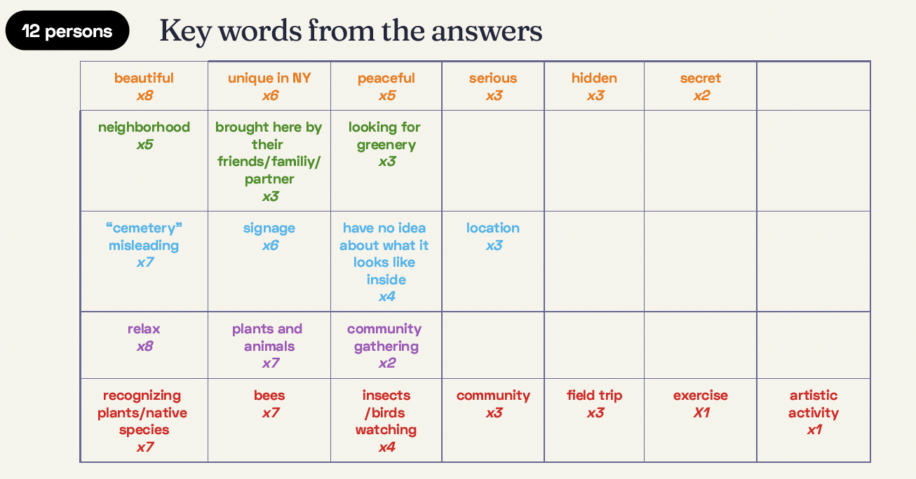 The Naval Cemetery Landscape is a serene green space, officially recognized as a Monarch Waystation and home to various native species like bees and butterflies. While it offers rich ecological and cultural value, the entrance's "cemetery" sign and high steps can feel uninviting. Through our research and surveys, we found that visitors often miss key ecological features and seasonal highlights due to limited information and interaction points.